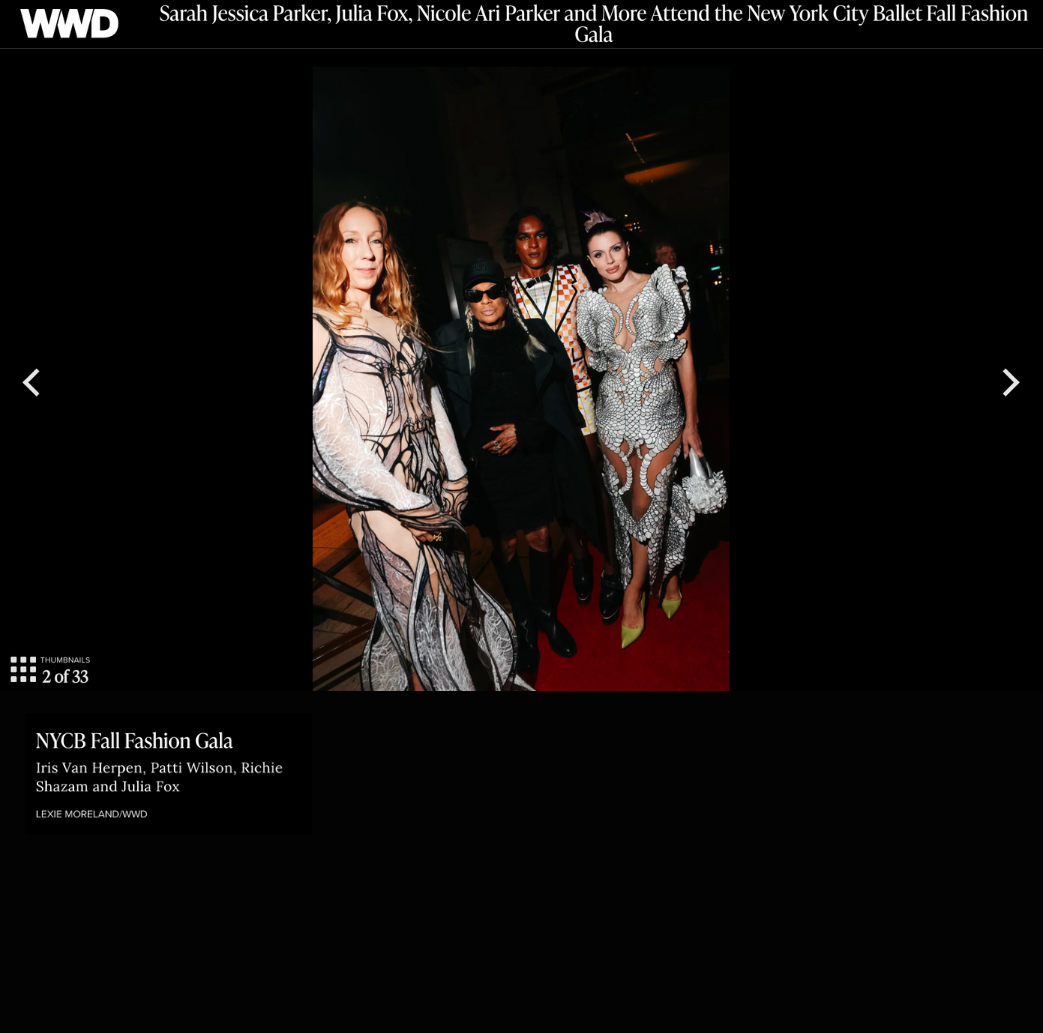 The “Iris” the And Just Like That star referred to is Iris van Herpen, the acclaimed designer celebrated for her innovative use of technology in haute couture. Van Herpen designed bold new costumes for choreographer Jamar Roberts’s original ballet Foreseeable Future, which made its world premiere at the 13th annual Fall Fashion Gala—an evening where ballet and high fashion converge in a celebration of creativity and artistry.